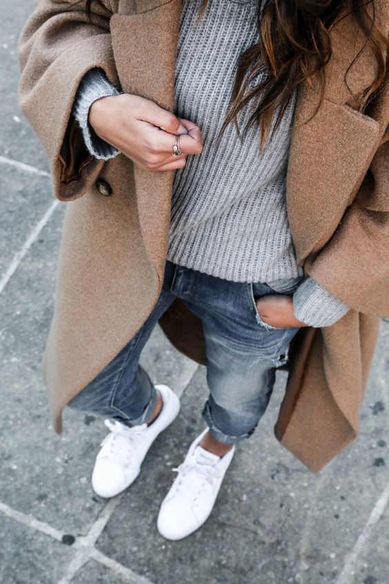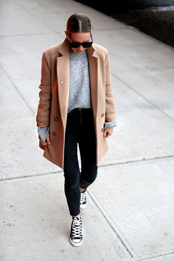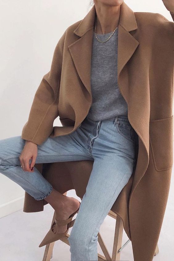 Gris et camel, et pourquoi pas ? Ce sont des couleurs neutres qui vont très bien ensemble surtout lorsqu’il s’agit de créer des looks minimalistes ou très casual.