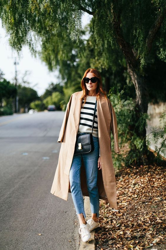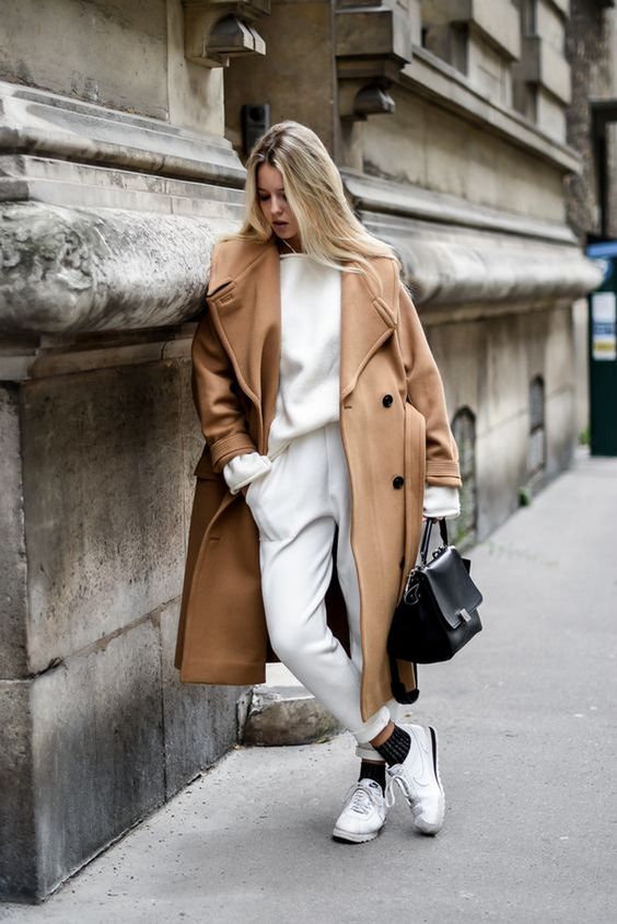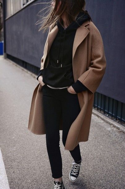 Vous êtes plutôt « jean baskets » et adeptes des looks cool ou streetwear ? Dans ce cas, vous adorerez sûrement l’option sweat + manteau camel, avec ou sans capuche. Ce style décontracté permet de casser un peu le côté classique et un peu « dadame » du manteau camel qui peut faire peur à certaines femmes, surtout s’il est ceinturé.
