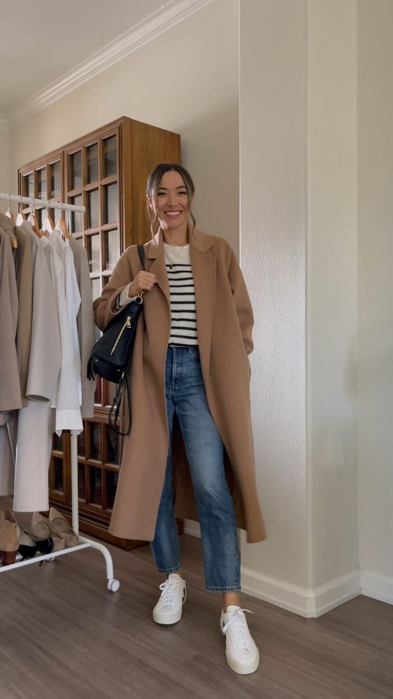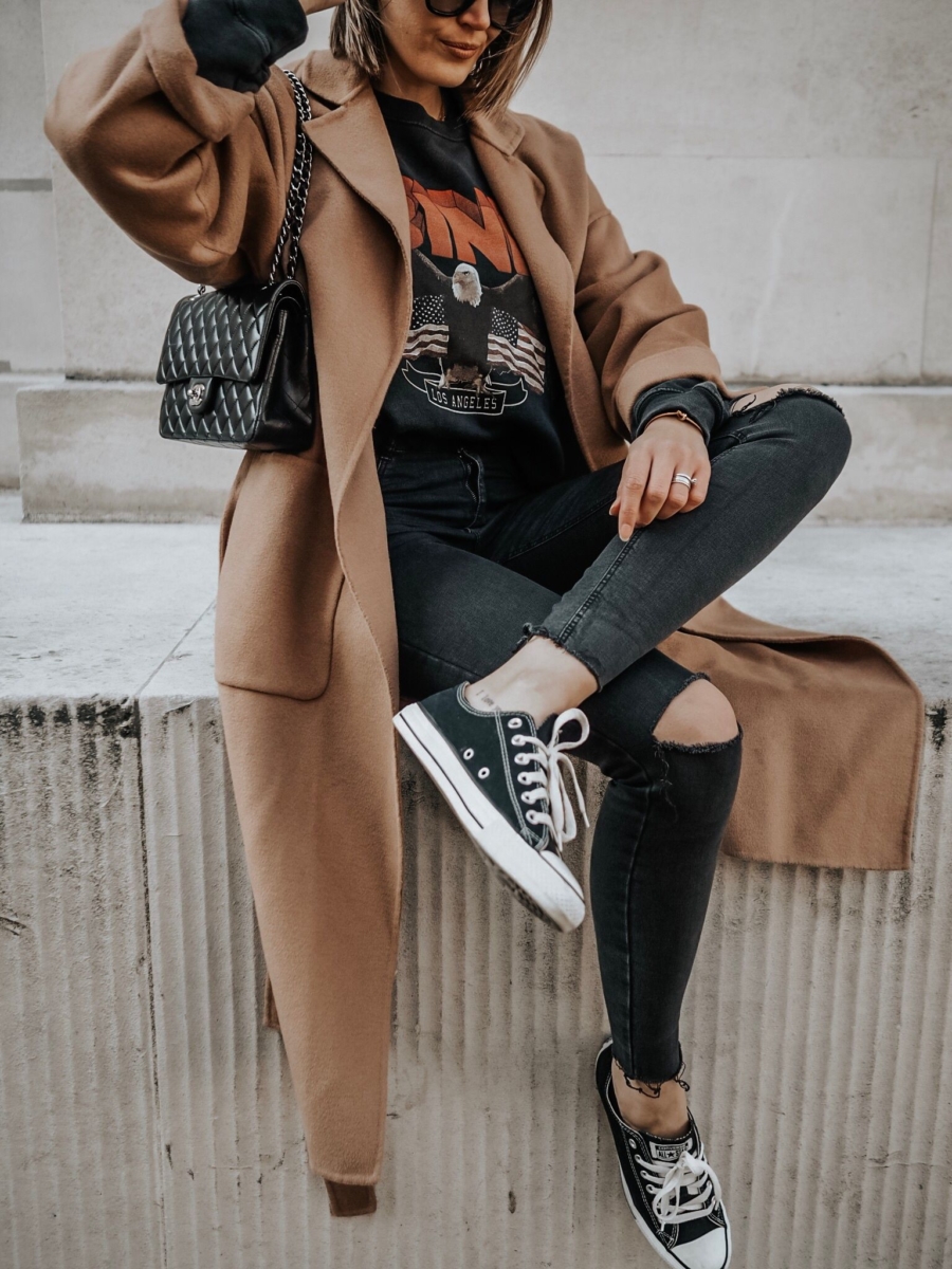 Vous savez que mes looks préférés sont toujours les plus simples, alors voici quelques idées pour porter le manteau camel avec des basiques de la garde-robe.