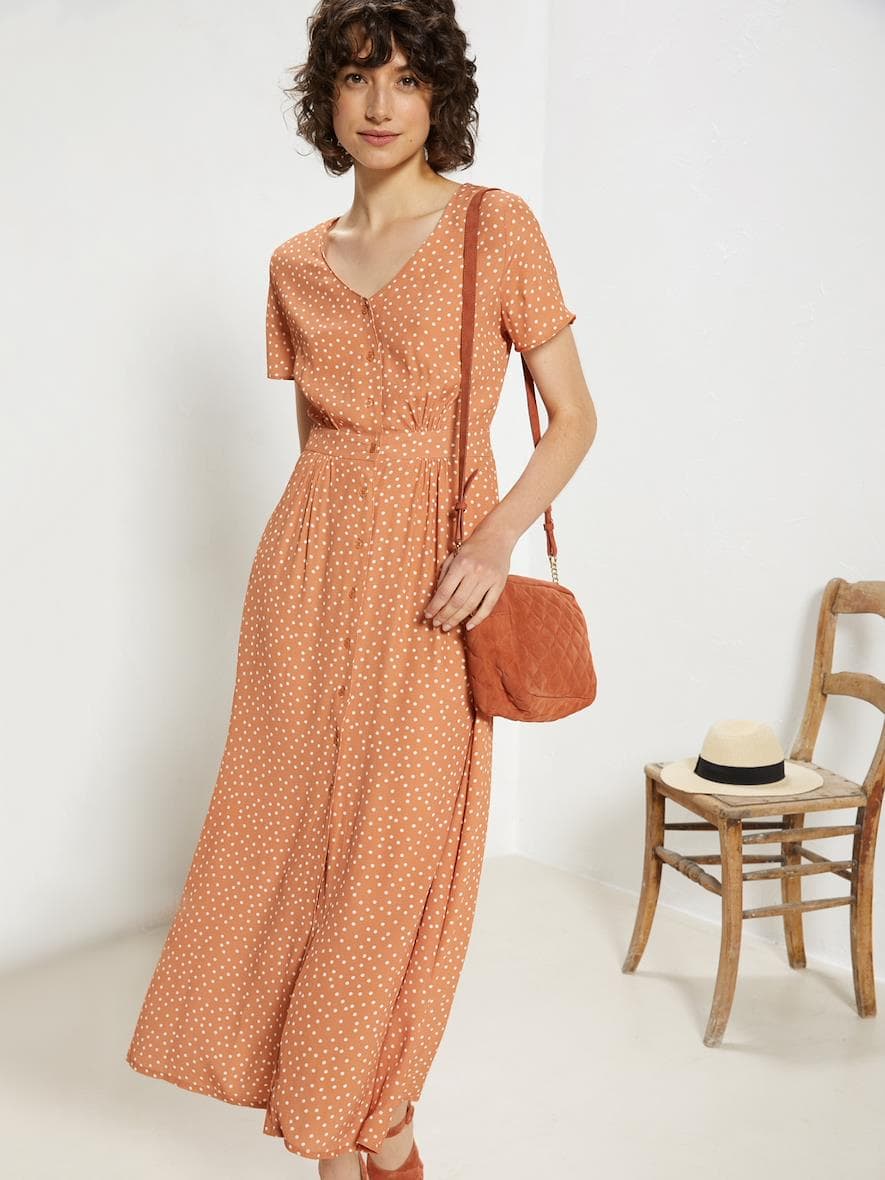 La viscose est une matière très agréable en été, c’est vrai ! Et Cyrillus en fait de très jolies 🙂 (la robe orange à pois est mon coup de coeur)